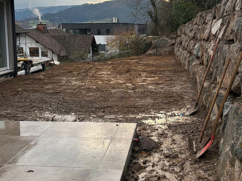 Der Schwarzwald stellt besondere Anforderungen an den Landschaftsbau: Hanglagen, starke Niederschläge und wechselnde Bodenverhältnisse. Wir kennen diese Bedingungen genau und passen jede Maßnahme individuell an - technisch, gestalterisch und ökologisch. Wo möglich, arbeiten wir mit regionalen Materialien und nachhaltig gewonnenem Naturstein.