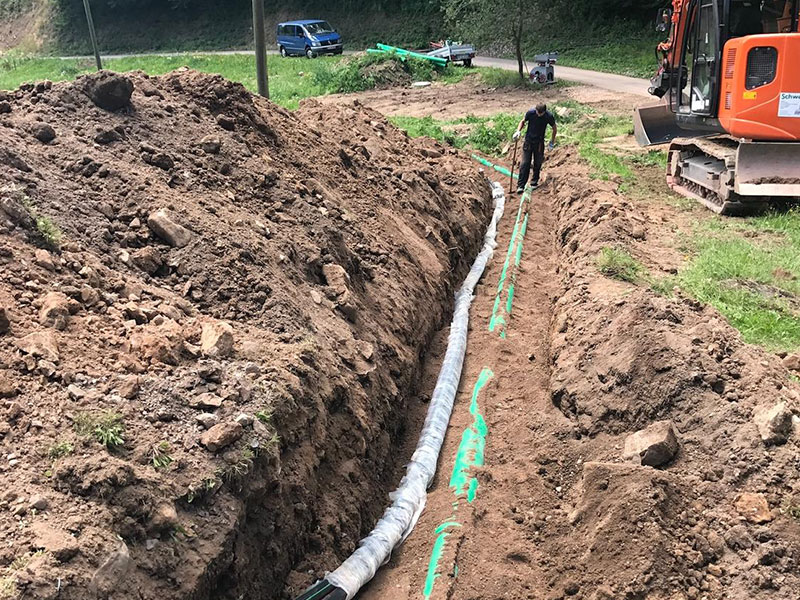 Gerade im ländlich geprägten Kinzigtal sind viele Haushalte oder Betriebe auf eine zuverlässige Erschließung im Außenbereich angewiesen. Ob Glasfaseranbindung, Wasserleitung oder Abwasserdruckleitung: Wir realisieren auch anspruchsvolle Projekte in Hanglagen oder schwer zugänglichem Gelände mit technischem Know-how und Geländeerfahrung.